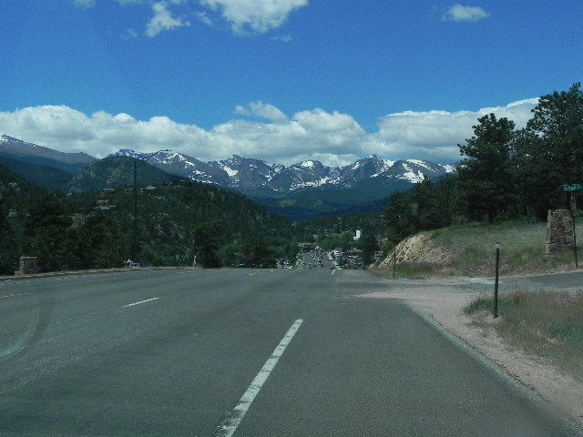 We drove to Estes Park , CO A beautiful town about an hour southwest of Ft. Collins and a stones throw from Rocky Mountain National Park (RMNP).   As you can see every turn was a postcard picture of the still snowy mtns.  The temps were in the 60s, low humidity with a very cold wind. I should have been dressed more like Eileen. I needed long pants and a sweatshirt. You can always left click to enlarge photo.